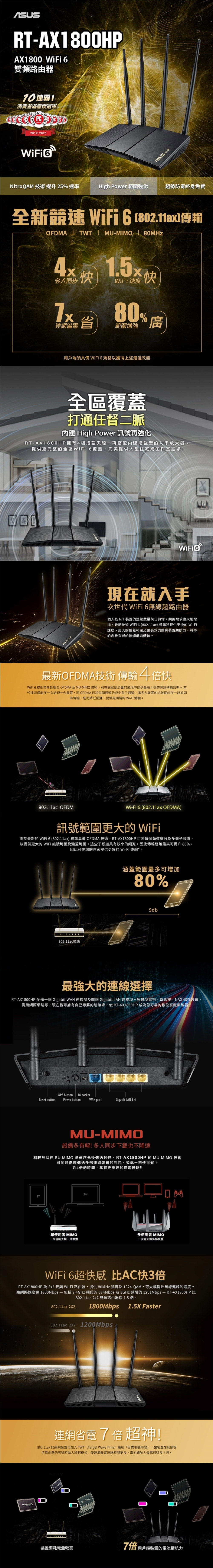 《促銷~12/31》ASUS 華碩 RT-AX1800HP V2 雙頻 WiFi 6 無線路由器(分享器) Ai Mesh