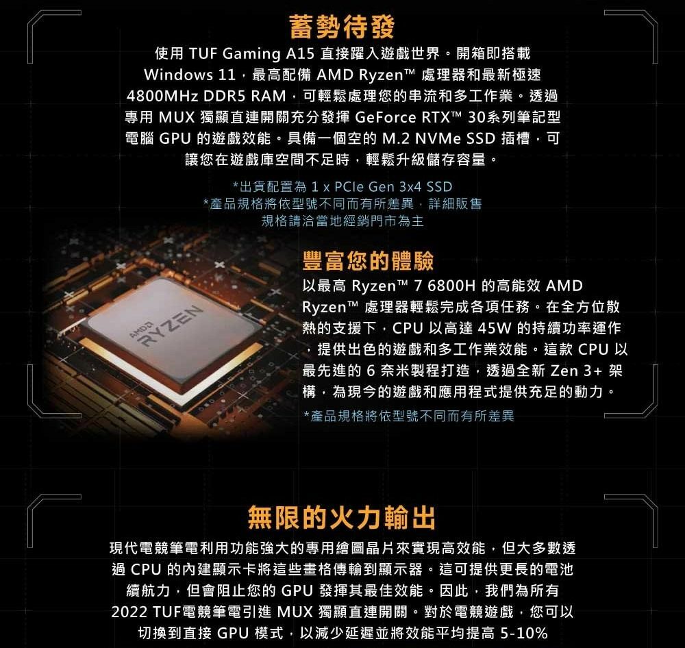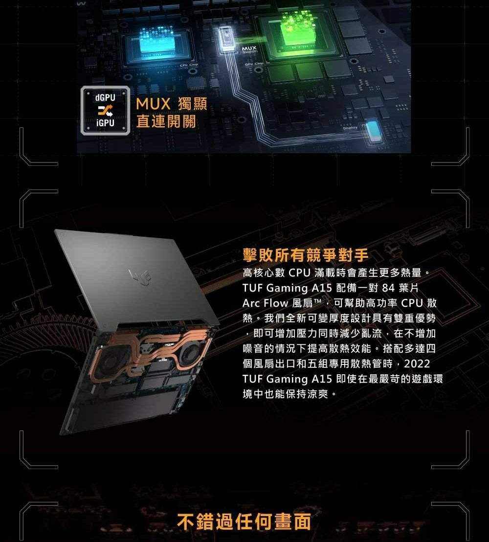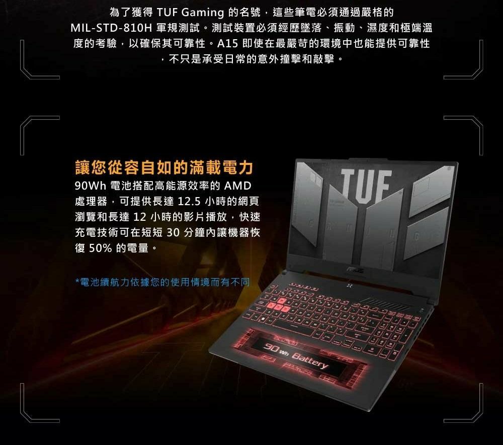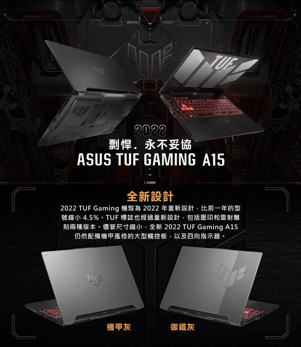 ASUS 華碩 FA507NU-0032B7735H 御鐵灰 (RTX4050-6GD6/R7-7735H/8G/512G/MUX獨顯直連/2.2KG/W11/15.6''/有鼠無包) TUF Gaming A15