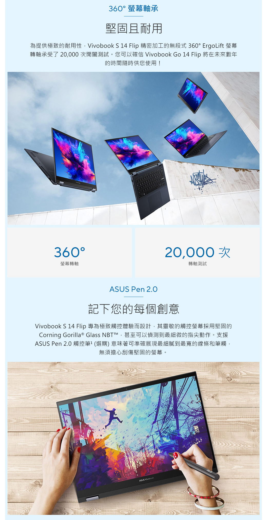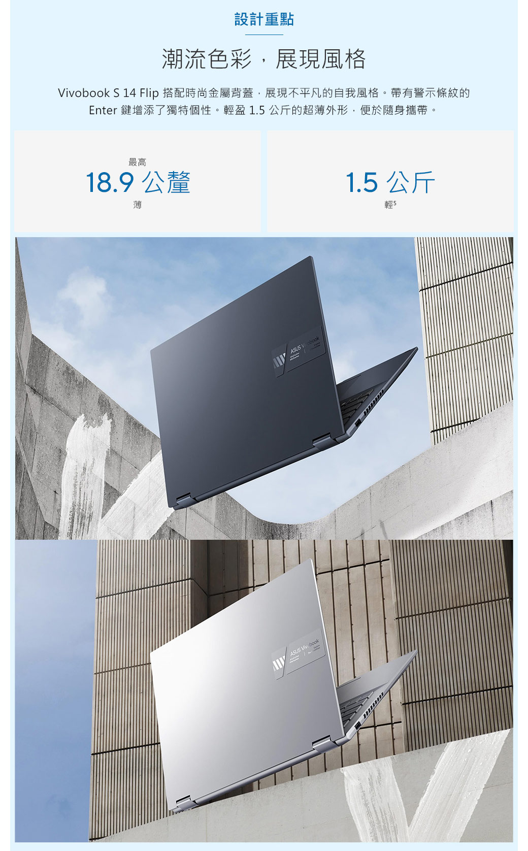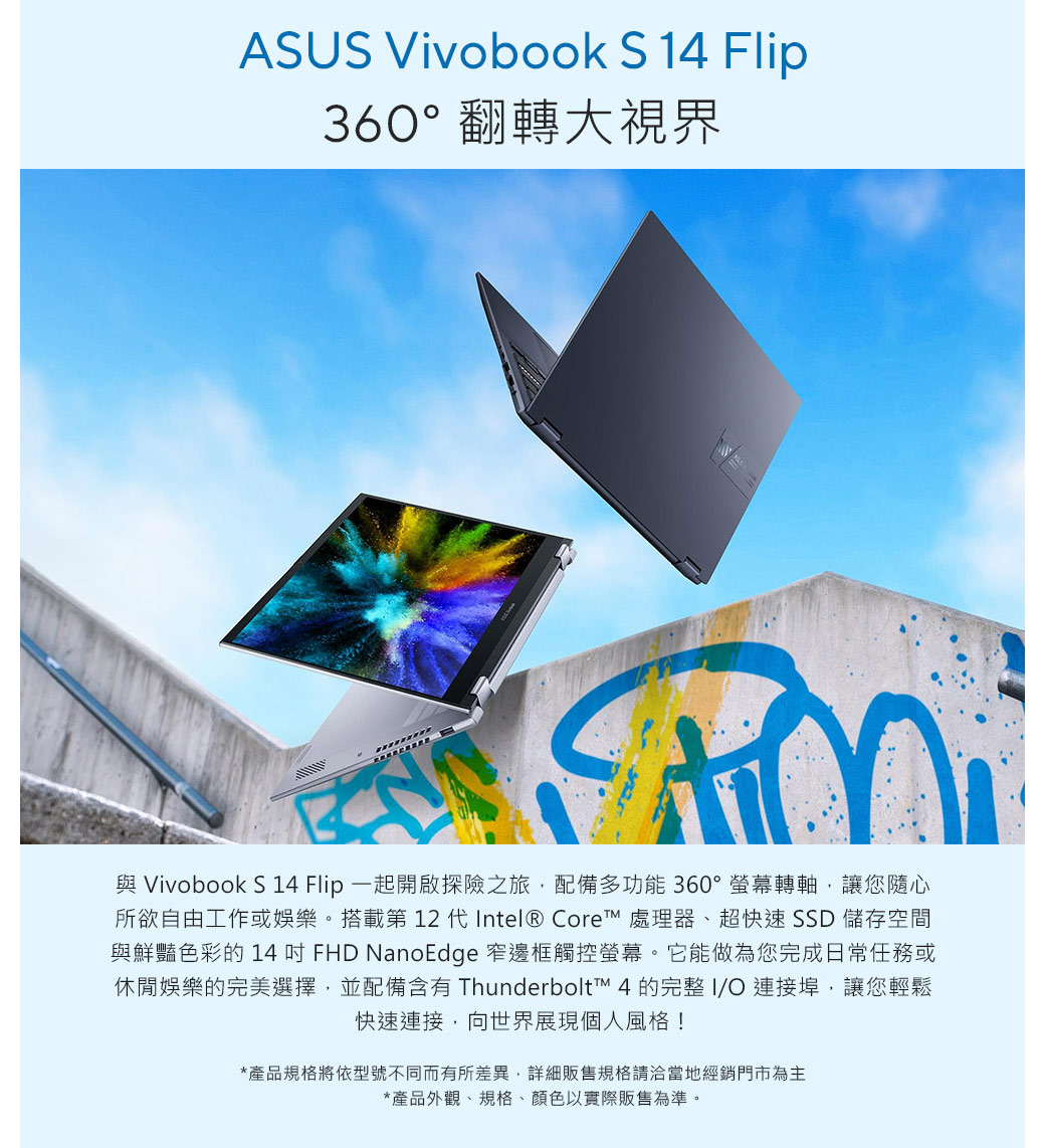 ASUS 華碩 Vivobook S14 Flip TP3402VA-0062B13500H 午夜藍 (i5-13500H/8G/512G SSD/1.5KG/W11/14''/翻轉觸控/保護袋/滑鼠)