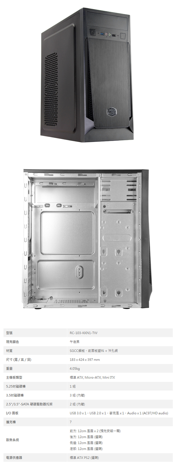 散熱風扇: 前置120mm*2(選購) 後方120mm 風扇x1 (內置)