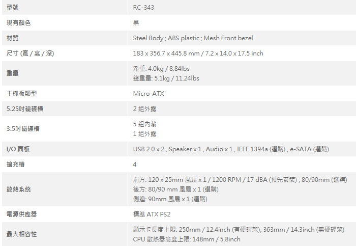 散熱風扇: 前置120mm*1(內置)後方90mm 風扇x1 (內置)