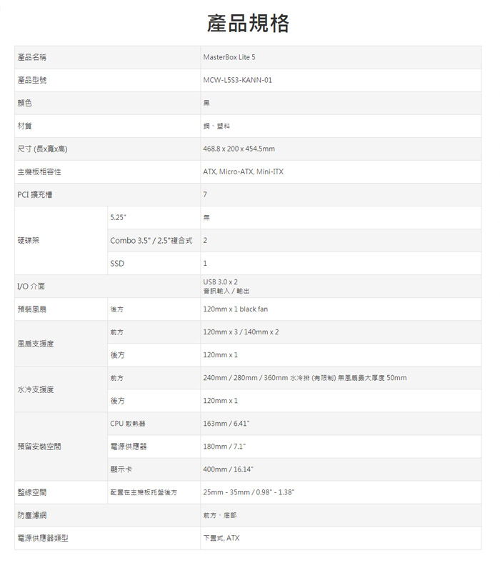 主機板相容性:ATX, Micro-ATX, Mini-ITX
