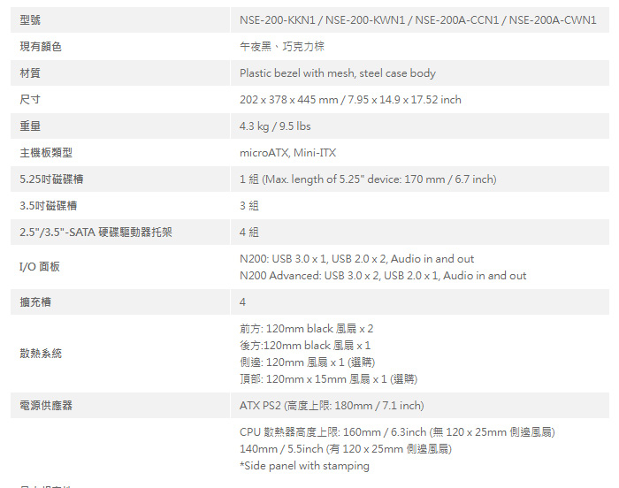 電源供應器ATX PS2 (Max. length: 180mm / 7.1 inch)