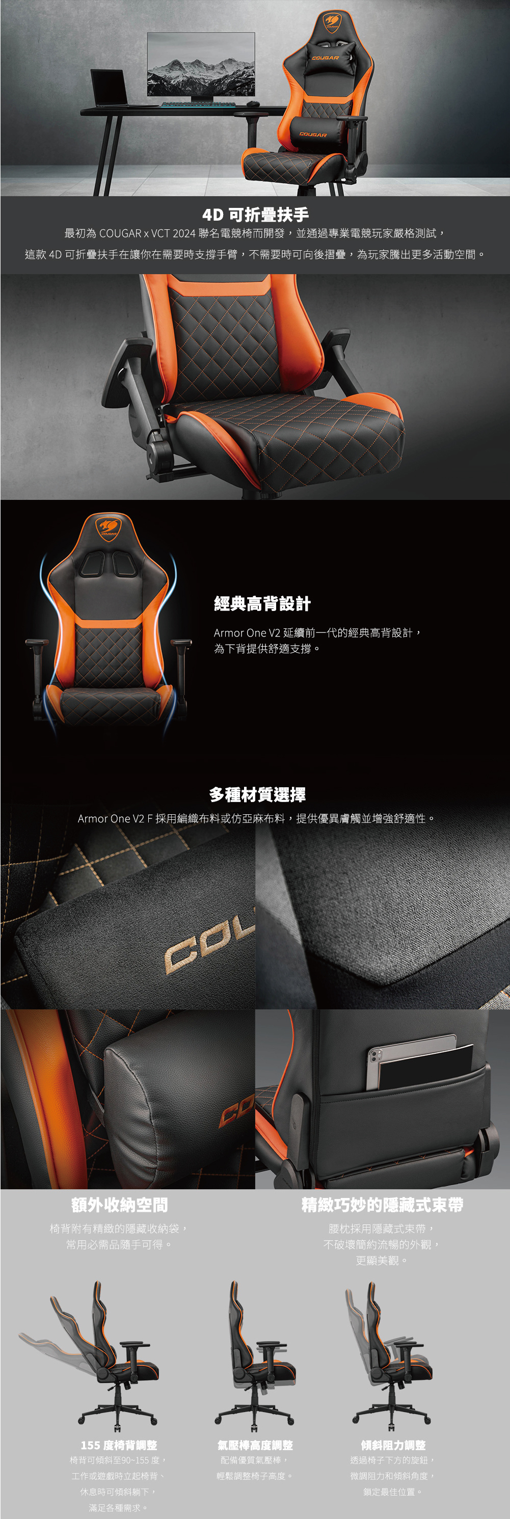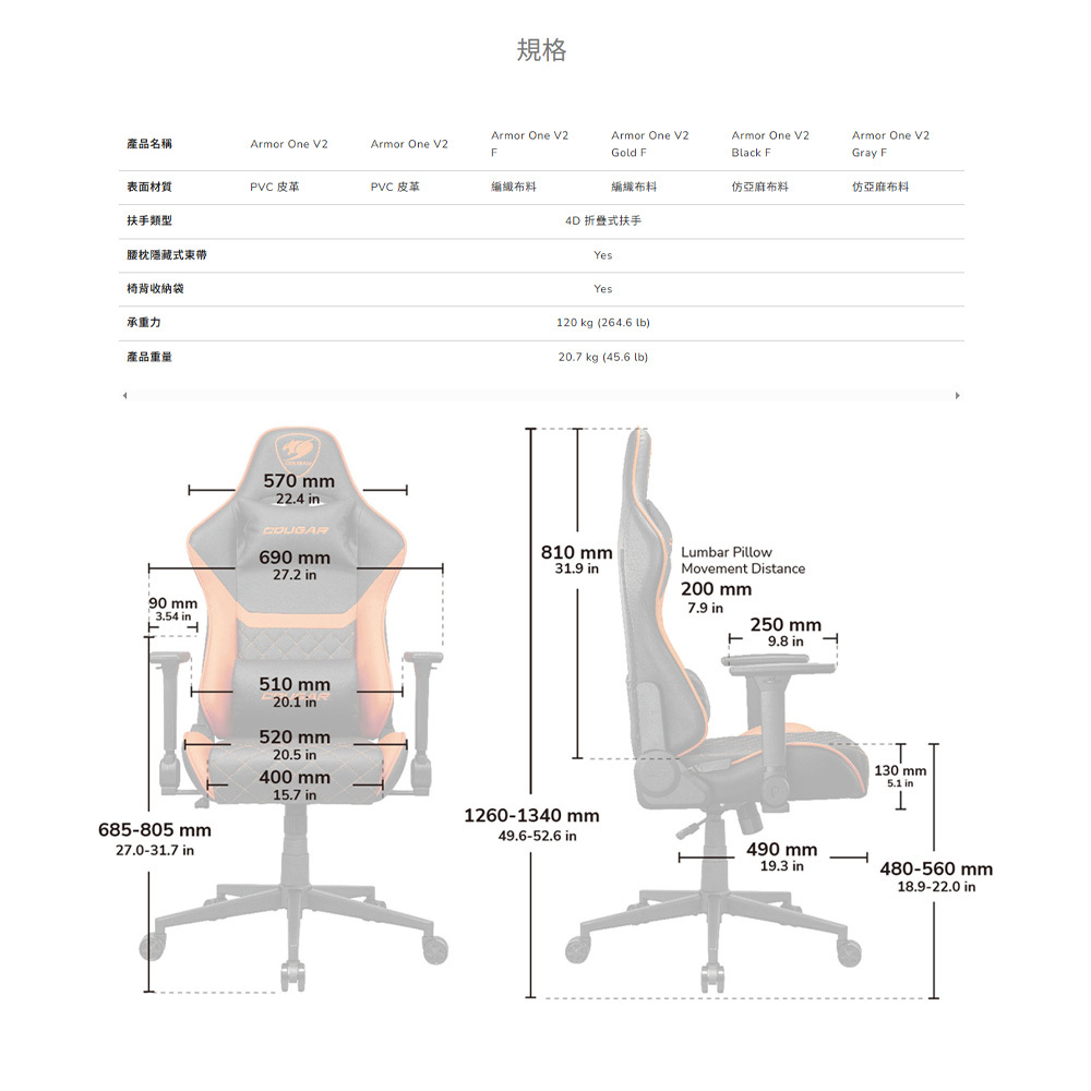 送椅凳>> Cougar 美洲獅 Armor one v2 4D 可折疊扶手 編織材質 電競椅