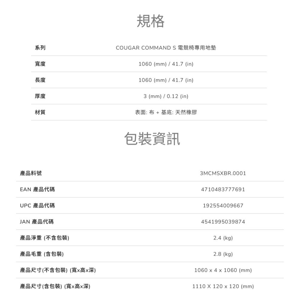 COUGAR COMMAND S 電競椅專用防刮地墊