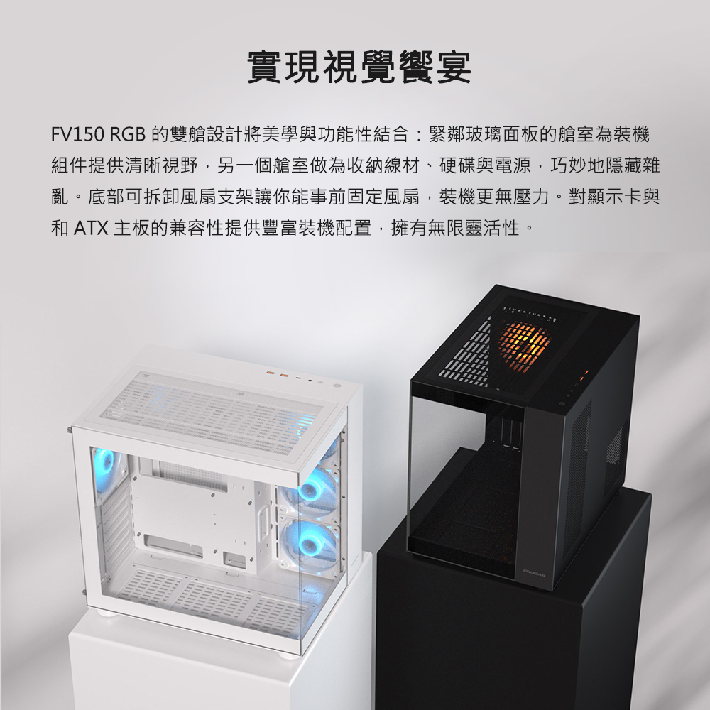 COUGAR 美洲獅 FV150 RGB 雙艙機殼 內建ARGB風扇*4 粉色