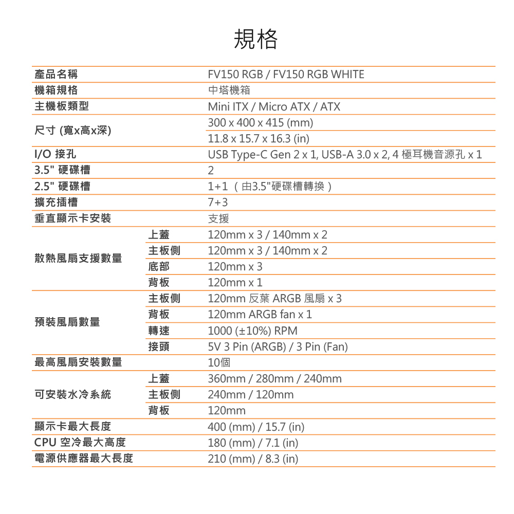 產品名稱:FV150 RGB
