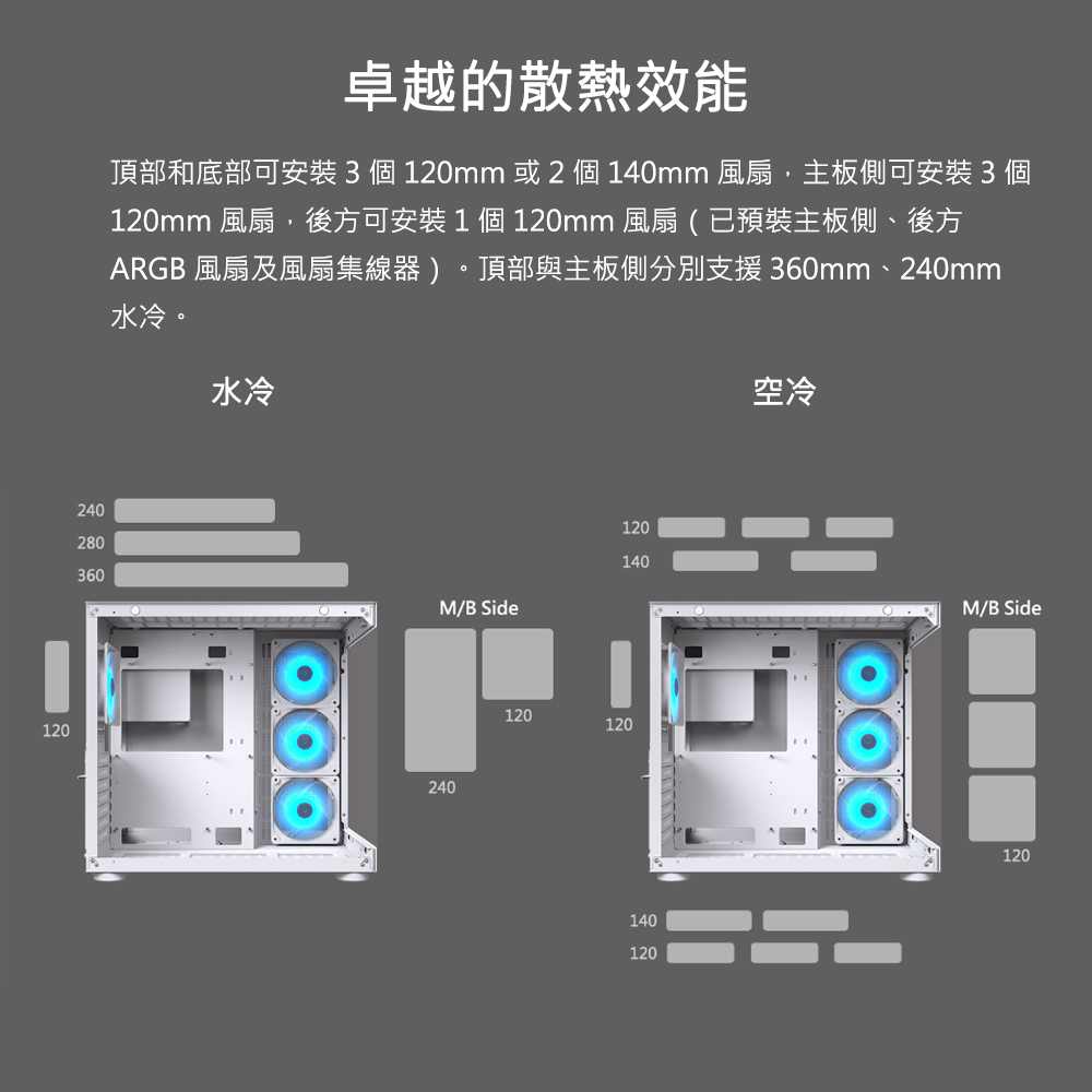 散熱風扇支援數量:上蓋120mm x 3 / 140mm x 2