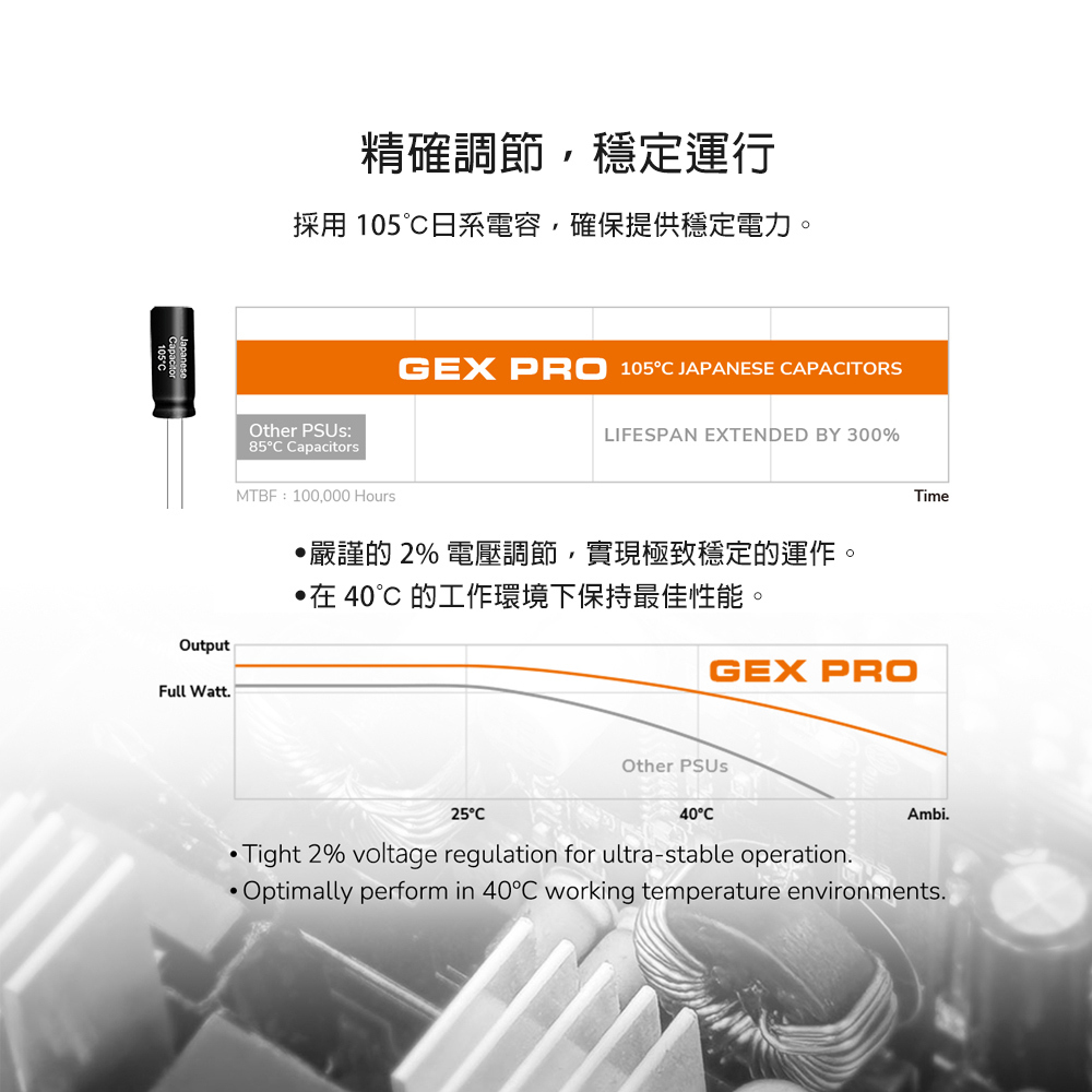 105°C 純日系電容,確保持續為電腦提供穩定的電力供應。