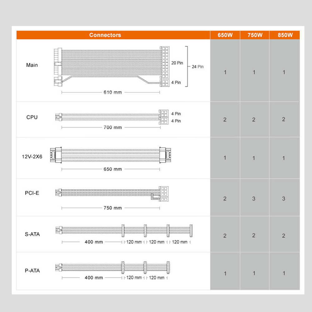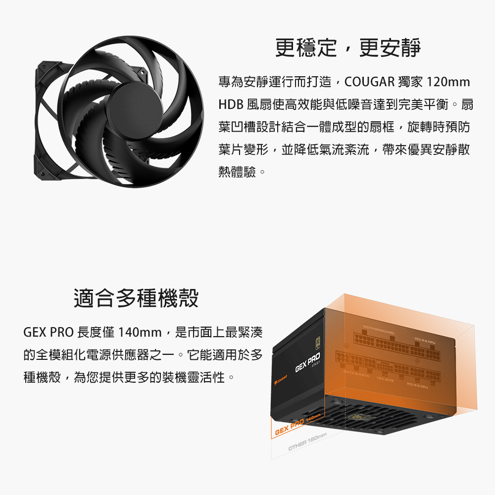 尺寸最緊湊的模組化電源之一,僅 140mm 長,適用於多數尺寸機殼,提供裝機充足的靈活性。