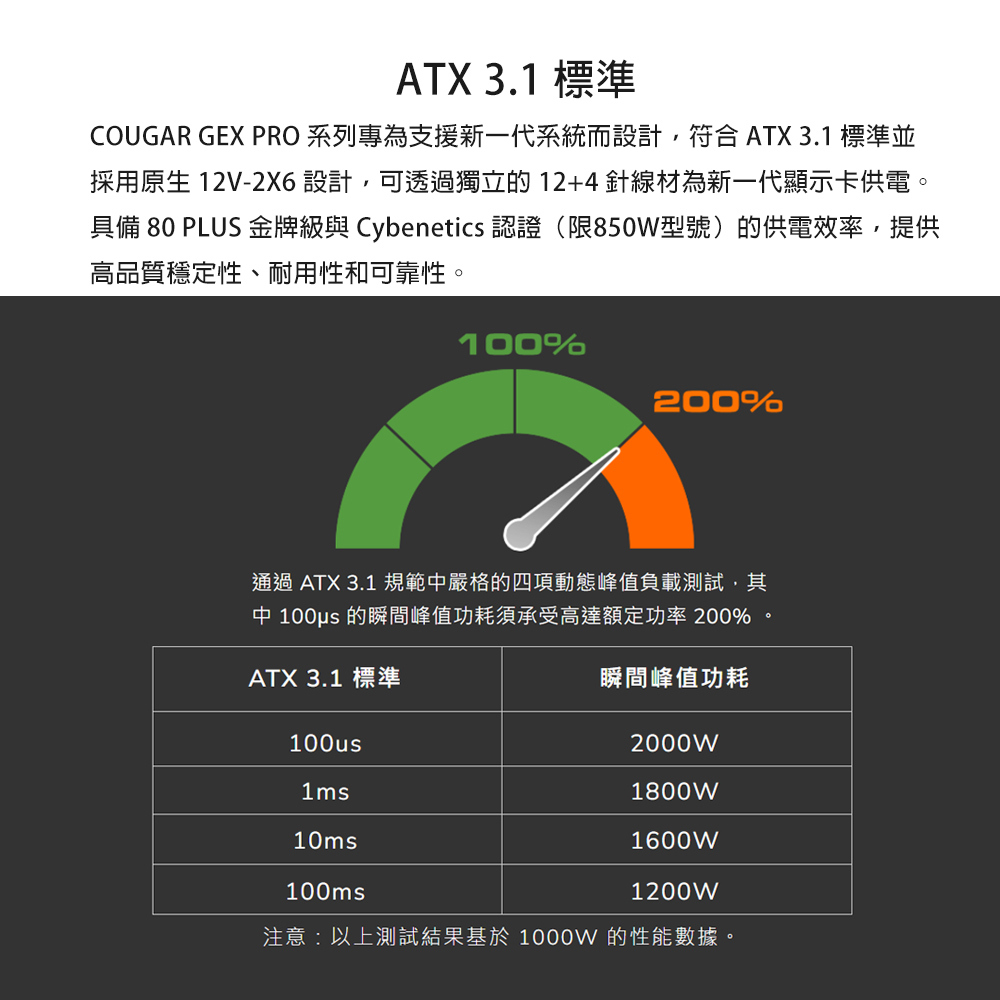 COUGAR 美洲獅 GEX PRO 850W (ATX3.1) 金牌模組電源供應器 80PLUS
