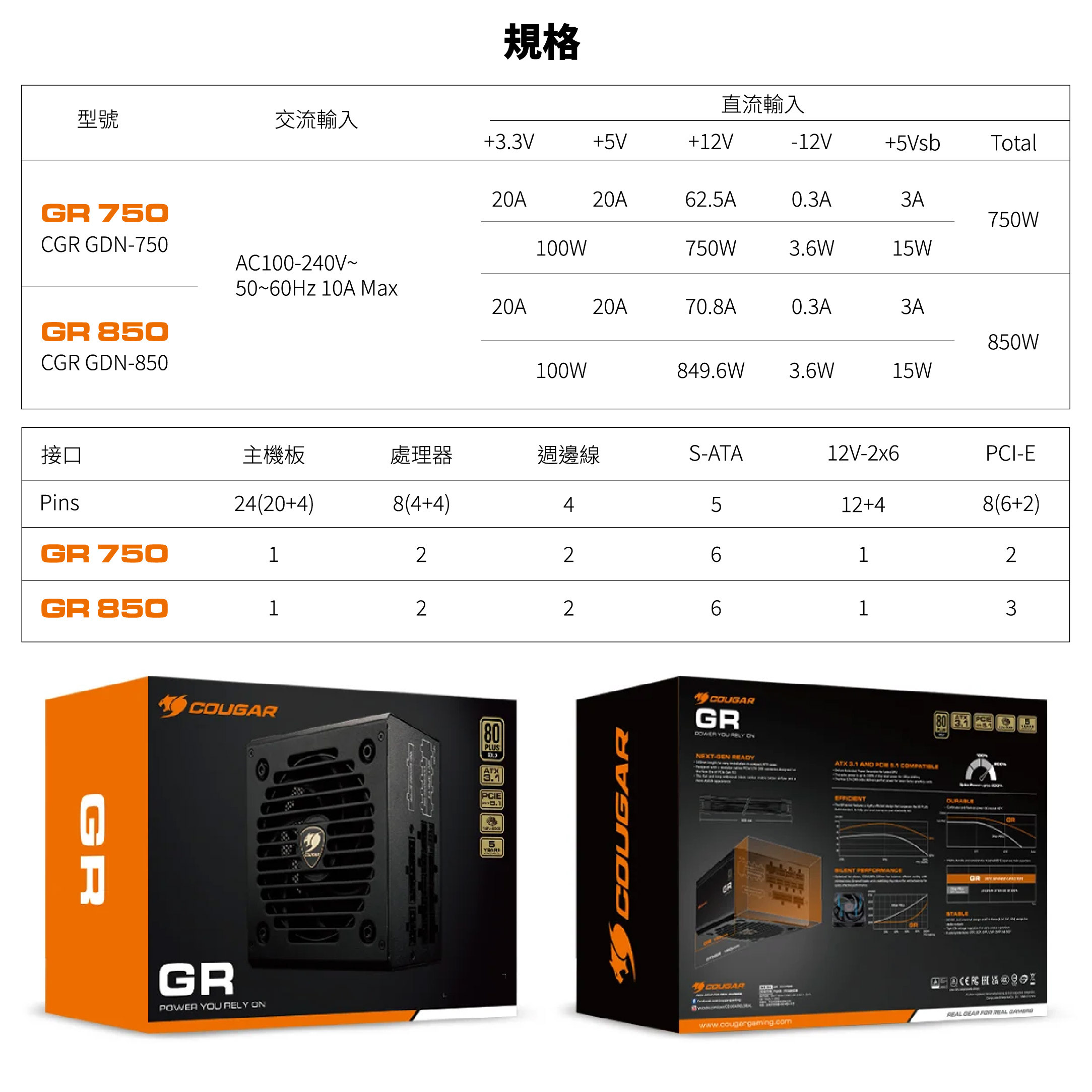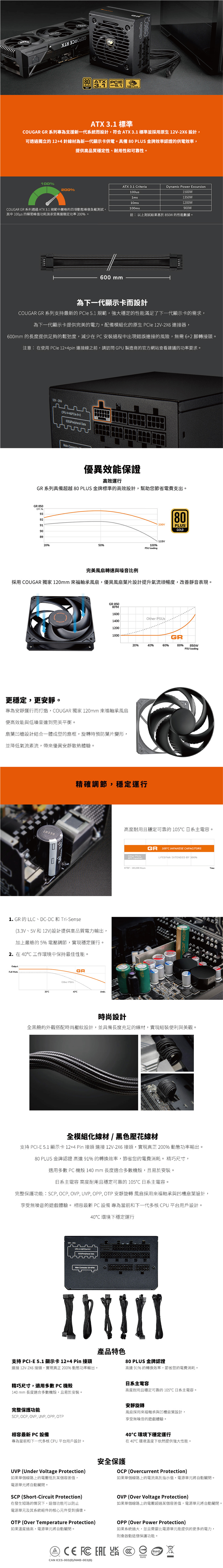 Cougar 美洲獅 GR 750w 日系電源供應器 金牌 全模組 新版本3.1 ATX