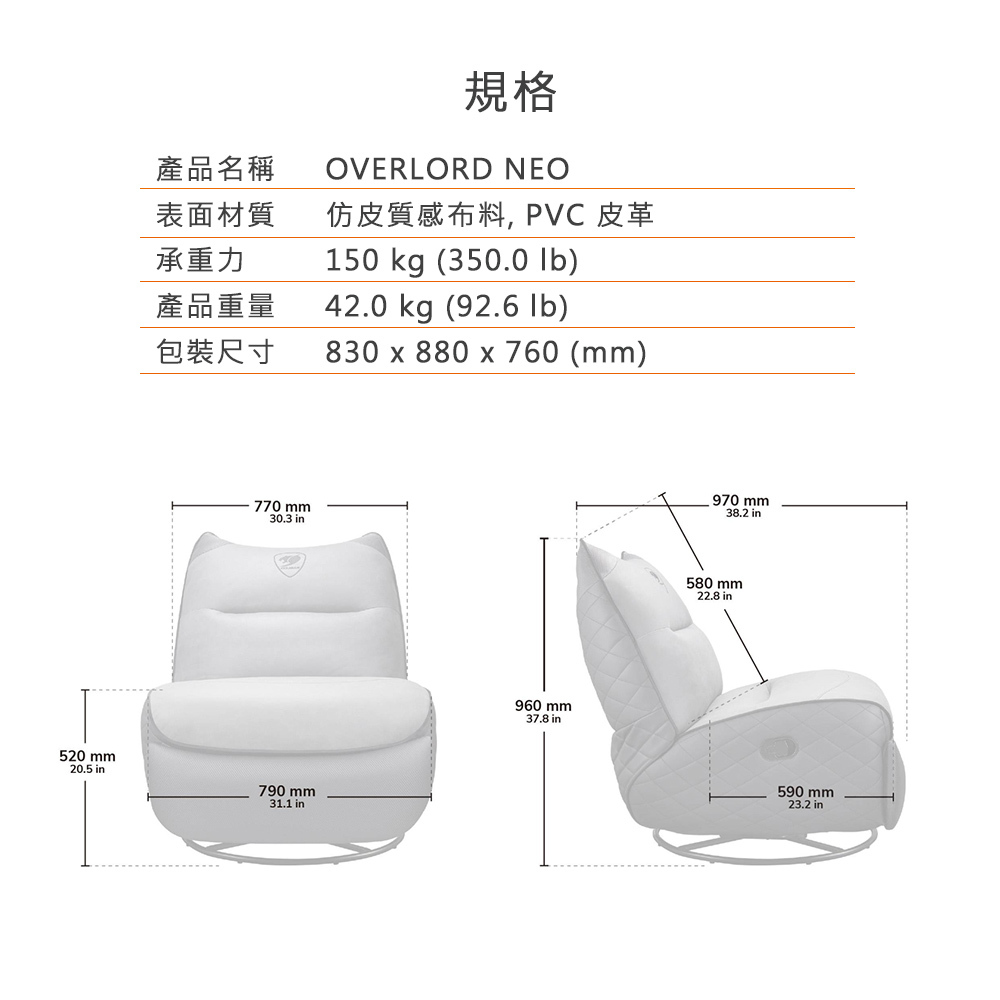 • 獨特的椅背貓耳造型展現 COUGAR 美學,增添俏皮的靈動感