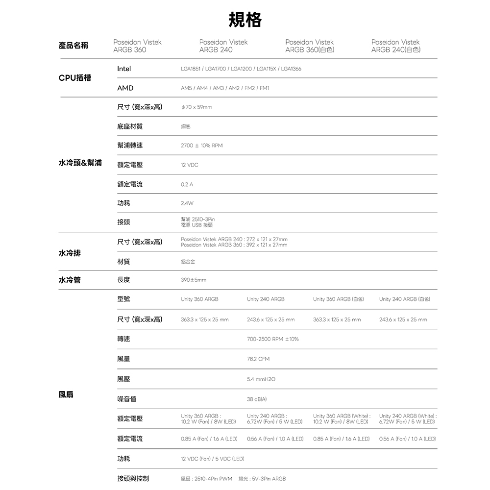 COUGAR POSEIDON VISTEK ARGB 240 一體式 數位顯示 水冷CPU散熱器 黑色 黑/白
