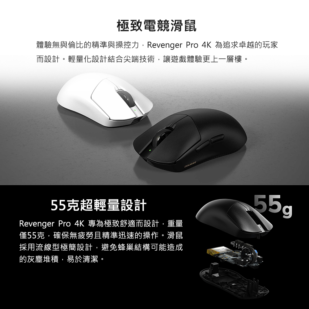 體驗無與倫比的精準與操控力,Revenger Pro 4K 為追求卓越的玩家而設計。輕量化設計結合尖端技術,讓遊戲體驗更上一層樓。