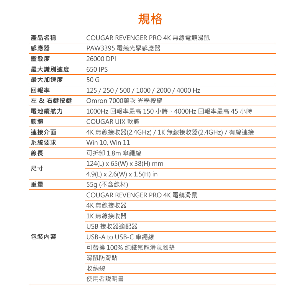 COUGAR 美洲獅 REVENGER PRO 4K 電競滑鼠 黑色
