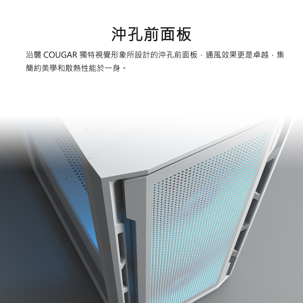 沖孔前面板提供強勁氣流與通風效果。