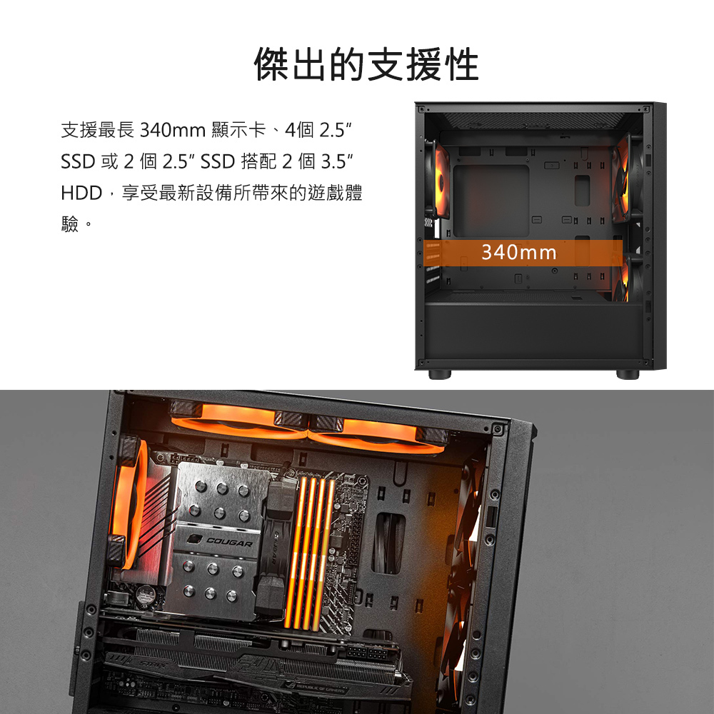 可容納長度 340mm 顯示卡。