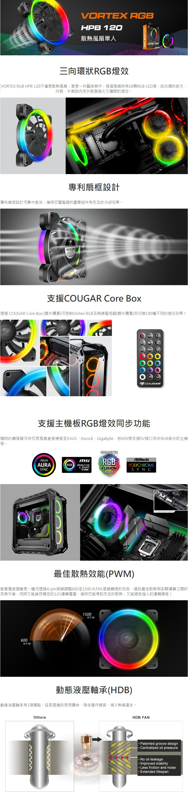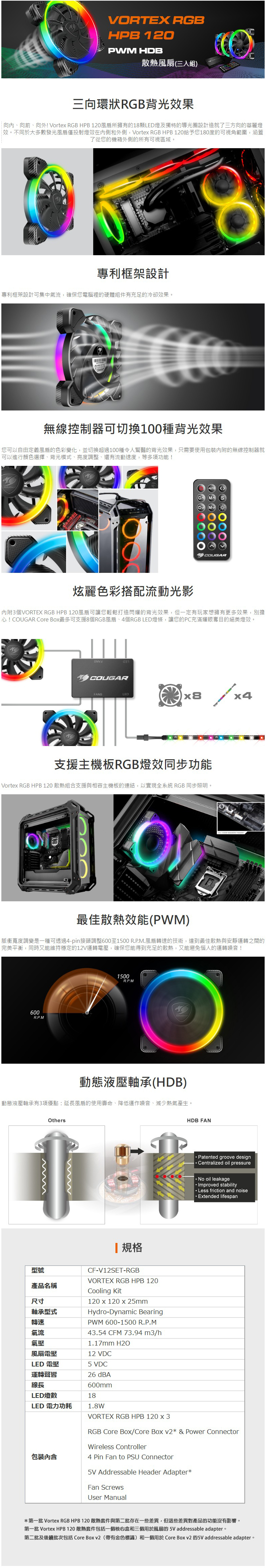 COUGAR 美洲獅 VORTEX RGB HPB 120 PWM HDB 散熱套組/單入