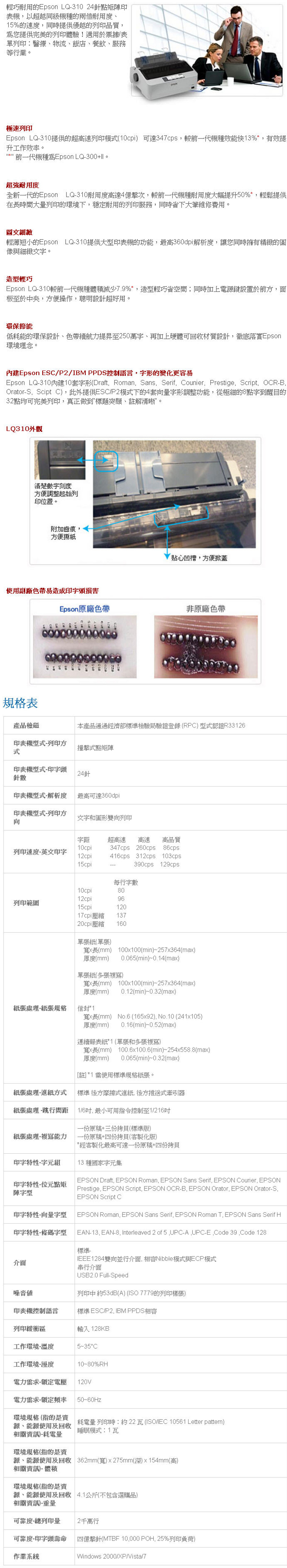 EPSON LQ-310 點陣式印表機 保固一年