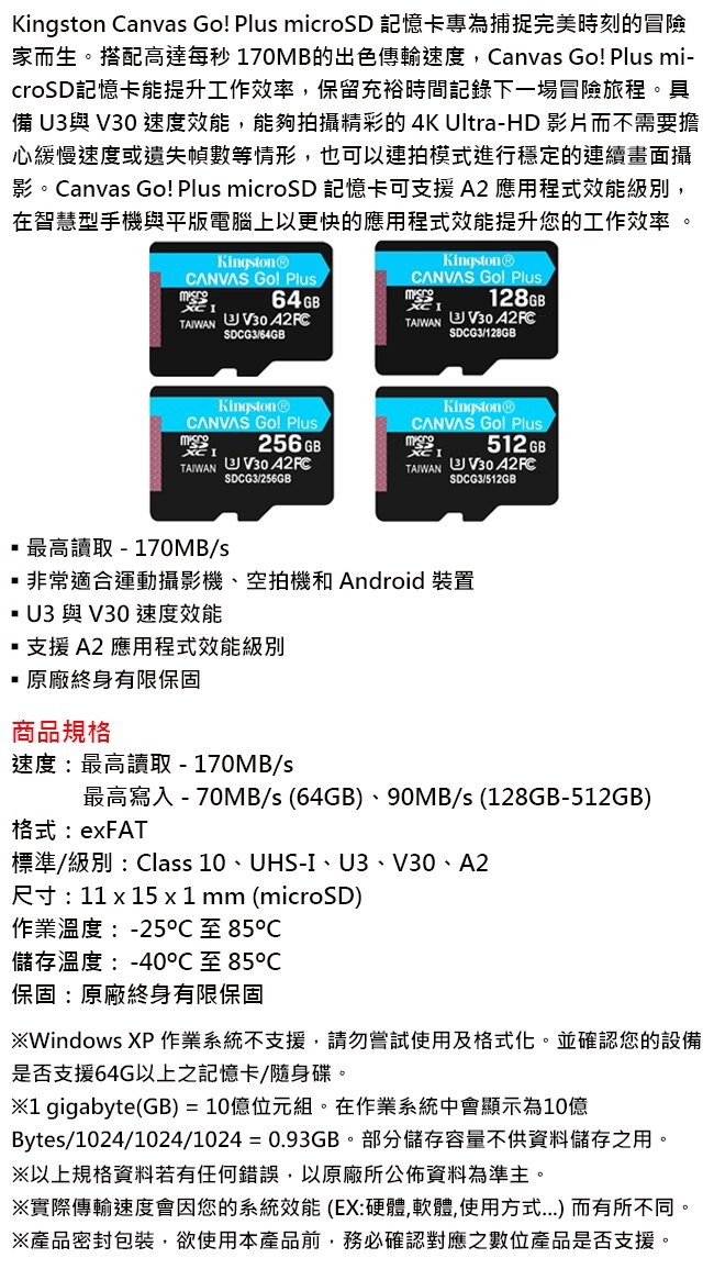 《升級SDCG4》金士頓 128G microSDXC TF U3 V30 A2 128GB 記憶卡 SDCG3