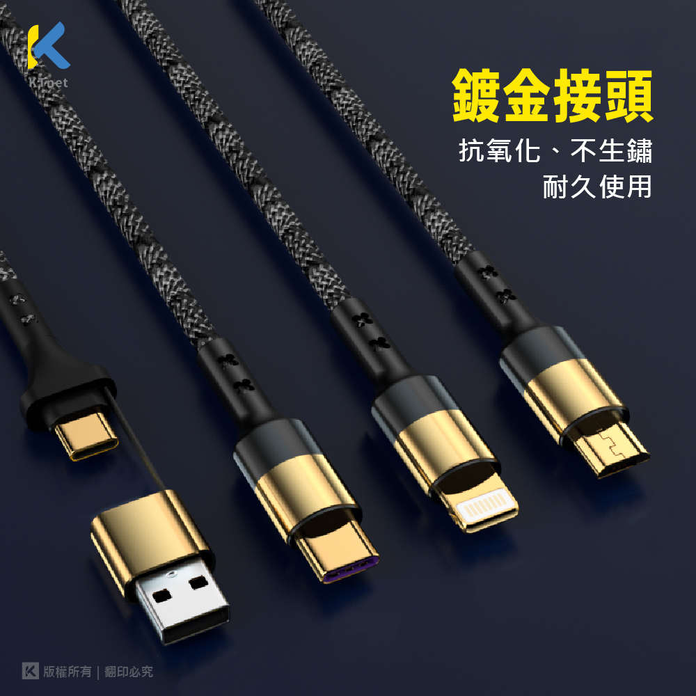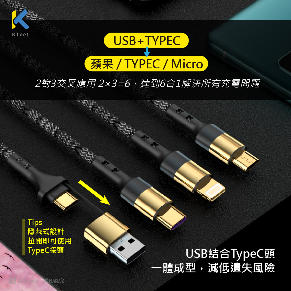 KT G423 U+C 6合1 PD 6A 快充編織線 1.2M