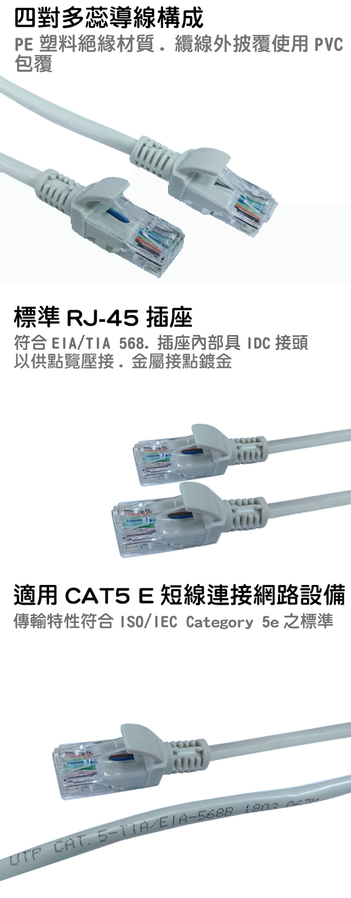 傳輸特性符合 ISO/IEC Category 5e之標準.