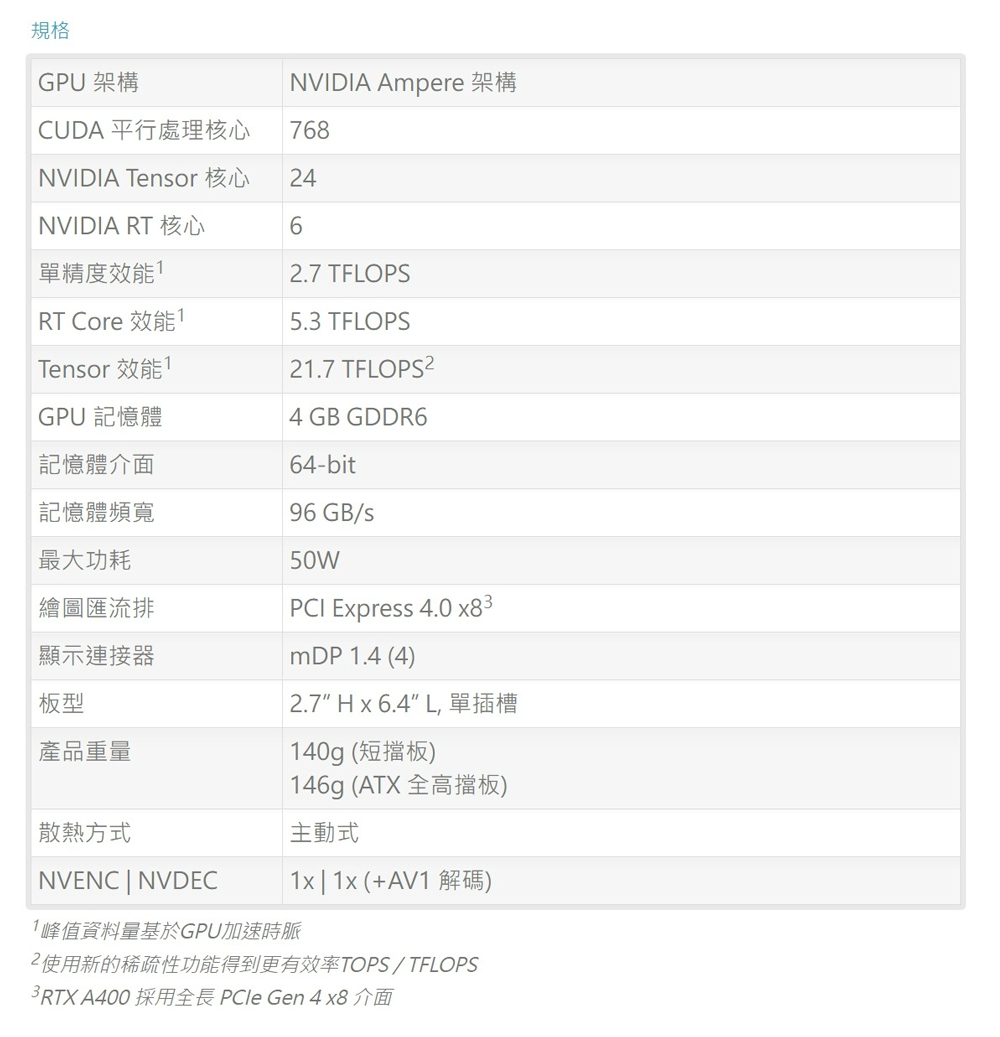 leadtek 麗臺 RTX A400 4GB GDDR6 64bit 工作站繪圖卡