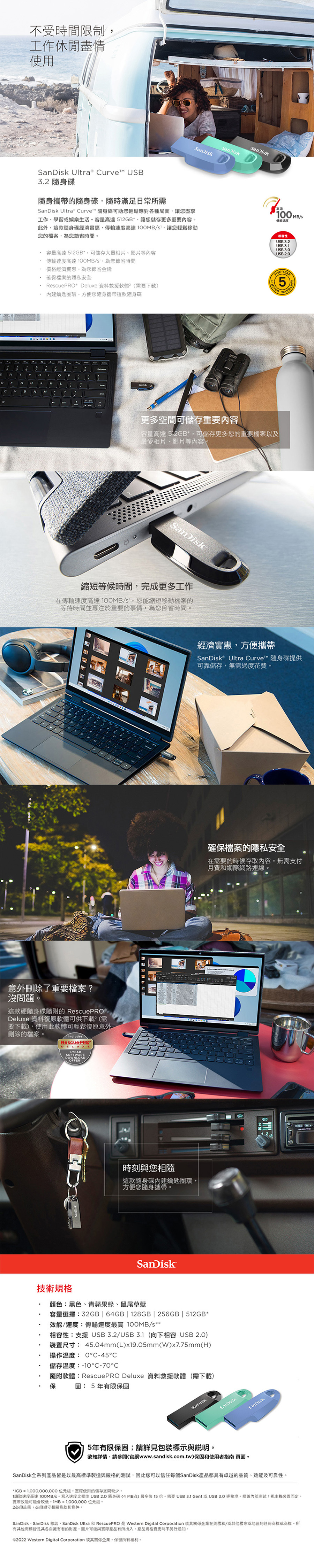 SanDisk 64G Ultra Curve CZ550 USB3.2 Gen1 高速 隨身碟 黑