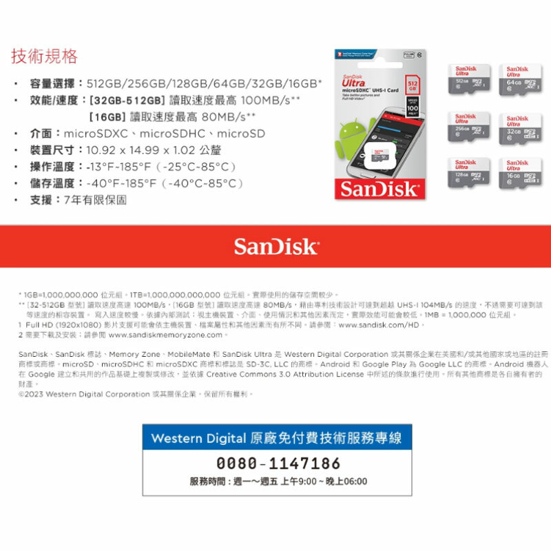 SanDisk 新帝 Micro-SD / TF Ultra 256G【Class10 / U1 / 100M】無轉卡 SDSQUNR