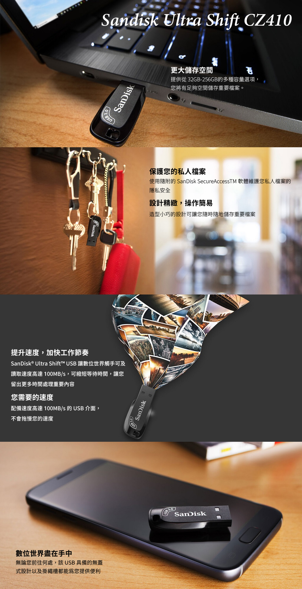 SanDisk 新帝 Ultra Shift CZ410 64G 讀取100M 超輕薄 USB3.0 隨身碟