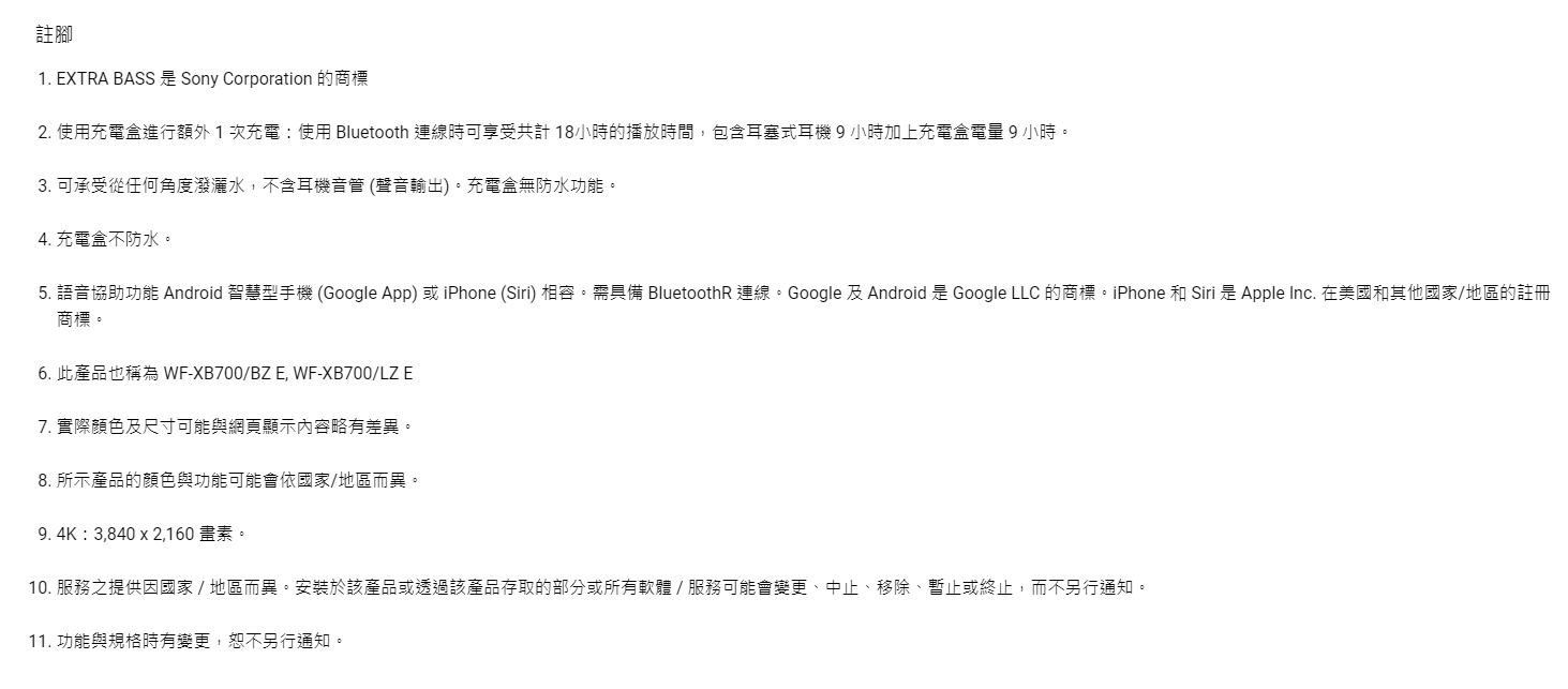 ※ 此產品也稱為 WF-XB700/BZ E, WF-XB700/LZ E
