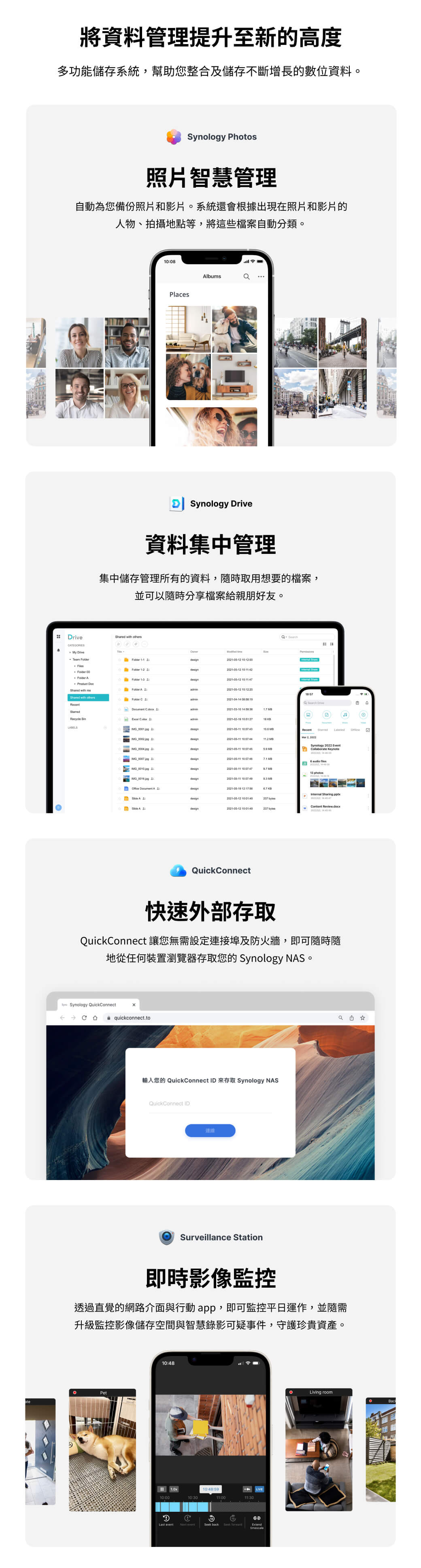 · 可擴充至最多 36 TB,並掌握 100% 資料所有權及提供多平台存取