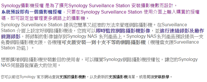 Synology網路攝影機(IPCam)授權包(1支裝) 不含攝影機