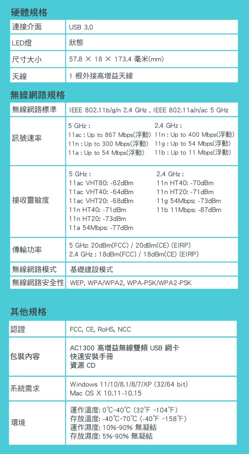 高增益天線 — 進階的外接高增益天線大大的增強 USB 網卡的接收和傳送的訊號強度