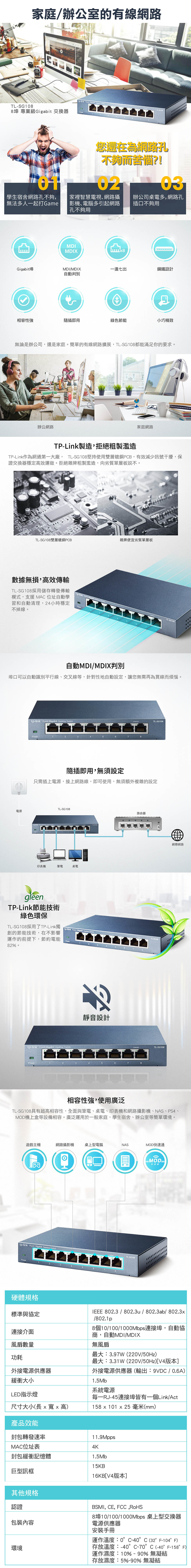 具8 個 10/100/1000Mbps 自動 MDI/MDIX / 自動協商 RJ45 連接埠