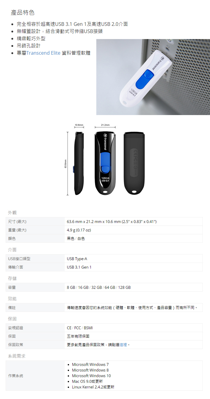◆介面: USB 3.0 (向下相容於USB 2.0)