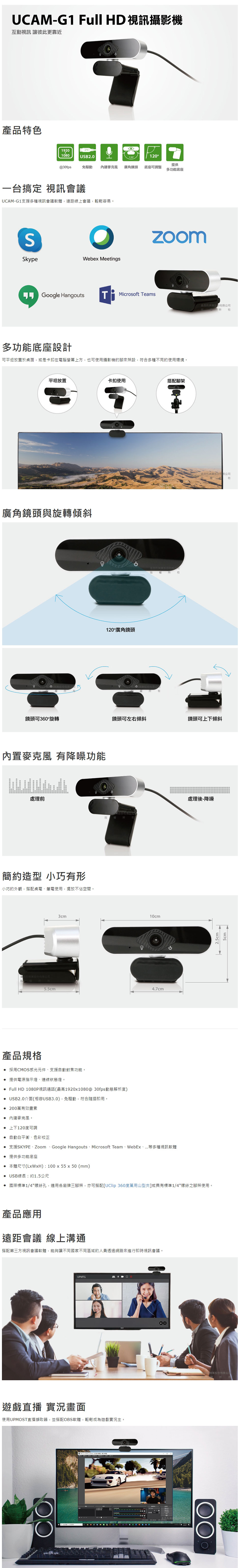 UPMOST 登昌恆 UCAM-G1 Full HD 視訊攝影機 補課 直播 免驅動 支援多種視訊會議軟體