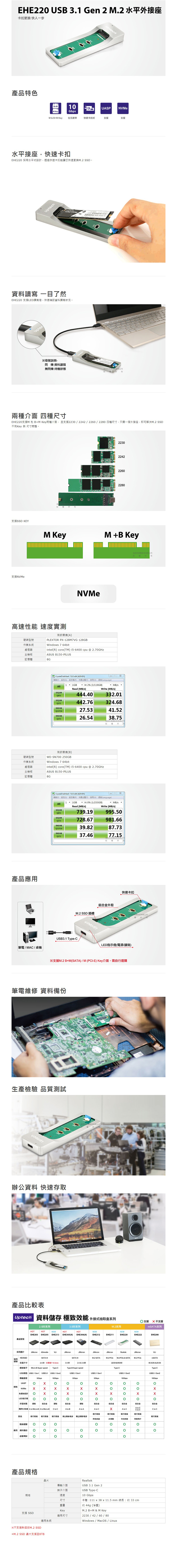 Uptech 登昌恆 EHE220 USB3.1 Gen2 M.2 水平外接座