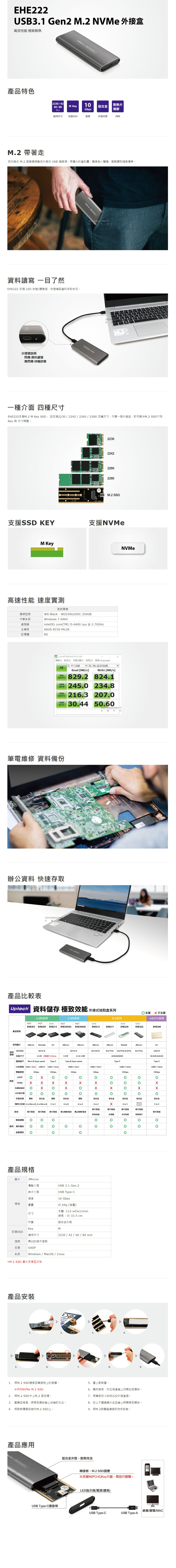 Uptech 登昌恆 EHE222 USB3.1 Gen2 M.2 NVMe 外接盒 (M.2 PCIe 專用)