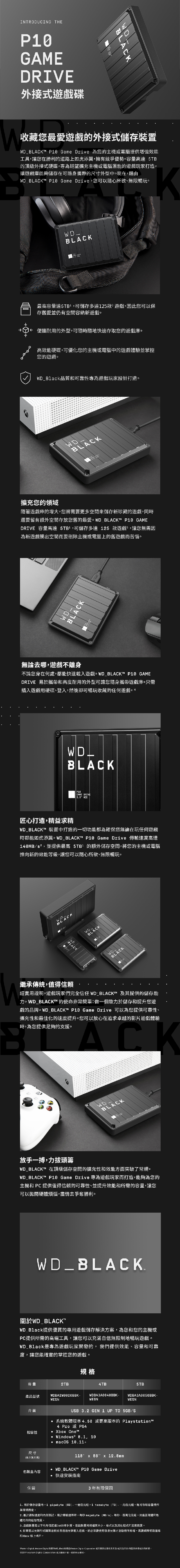 WD 黑標 P10 Game Drive 4TB 2.5吋 電競 行動硬碟 支援 PS4/PS5