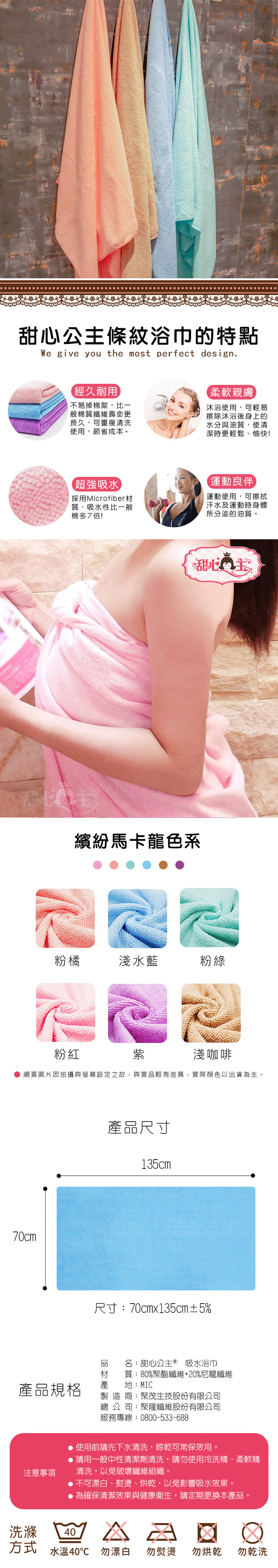 甜心公主 素色浴巾(70x135cm) 挑色請先詢問