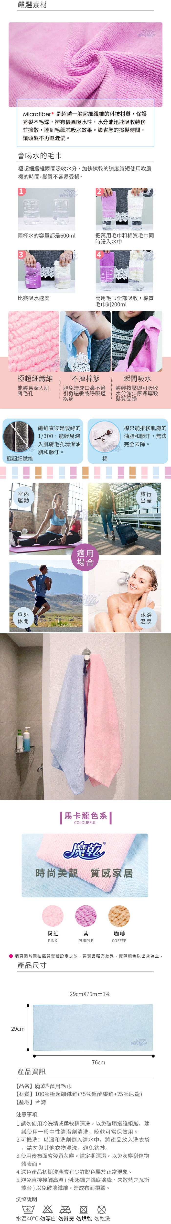 • 吸水力強,擦髮超快乾